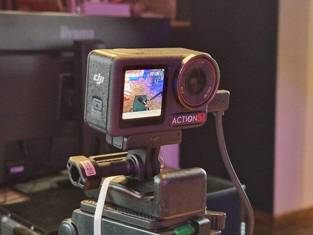 Aranżacja 2 – Profesjonalne ustawienie przy stoliku, przystosowane do nagrań z jedną lub dwiema osobami (np. vlog, podcast z analizą, prezentacja). -